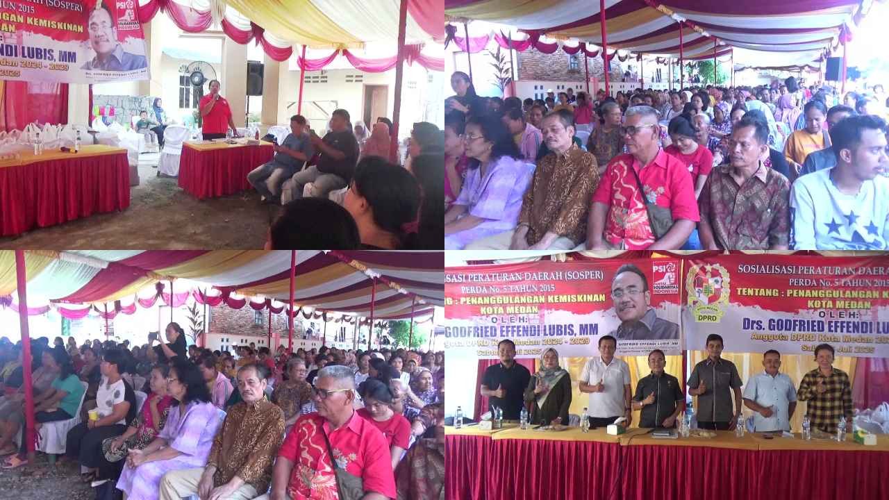 Kegiatan yang dipimpin langsung Anggota DPRD Kota Medan Drs. Godfried Effendi Lubis, MM itu berlangsung di Jalan Turi Lingkungan 10, Medan Amplas, dihadiri warga yang tumpah ruah dilokasi serta perwakilan Dinas Kesehatan, PKH, UPT BMBK, kepala puskesmas dan kepling setempat.