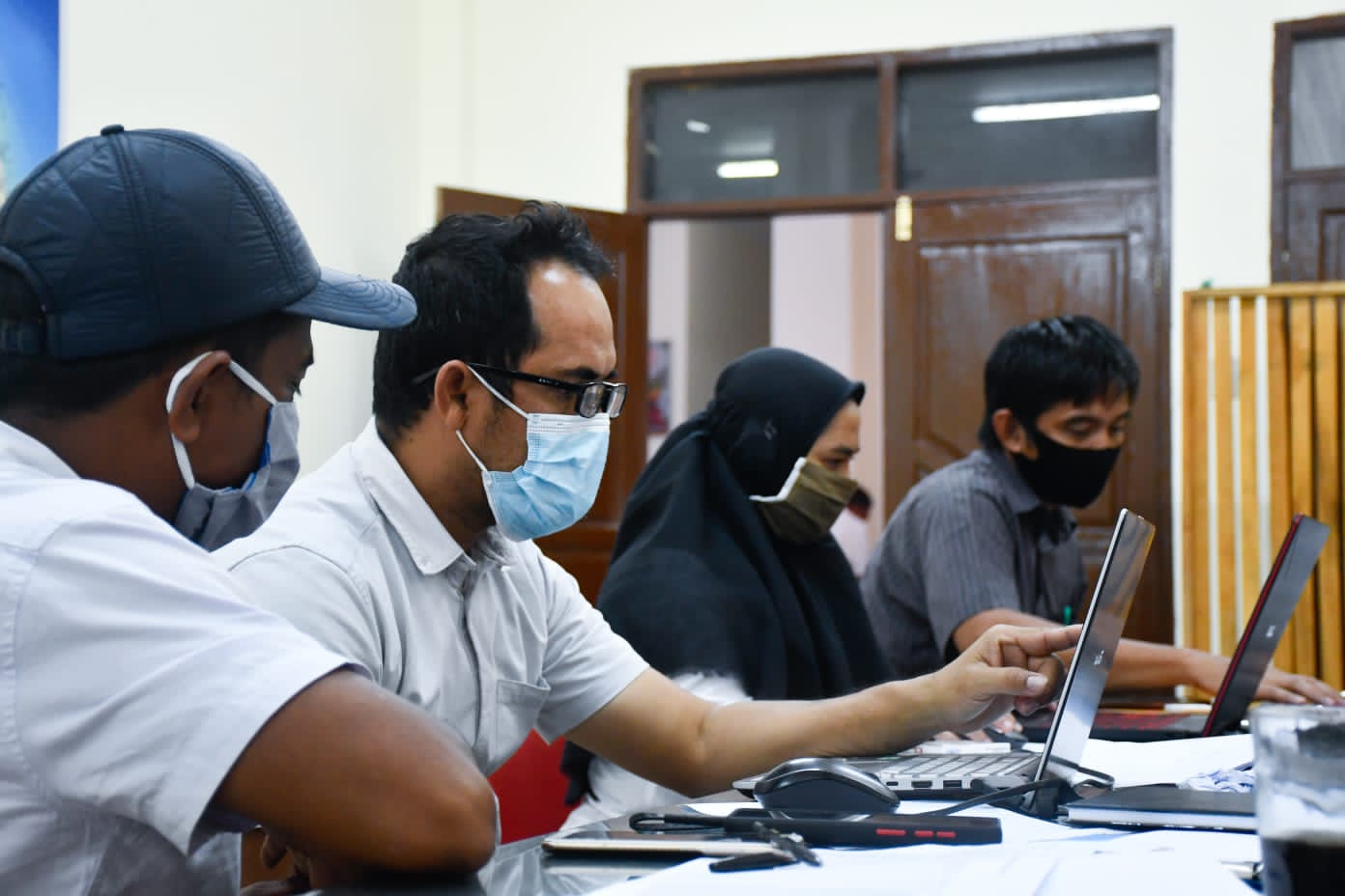 Tim Kelompok Kerja (Pokja) saat melakukan tahap awal pemetanaan tambak masyarakat di aula Dinas Kelautan dan Perikanan Kabupaten Aceh Timur, Rabu (27/1/2021),
