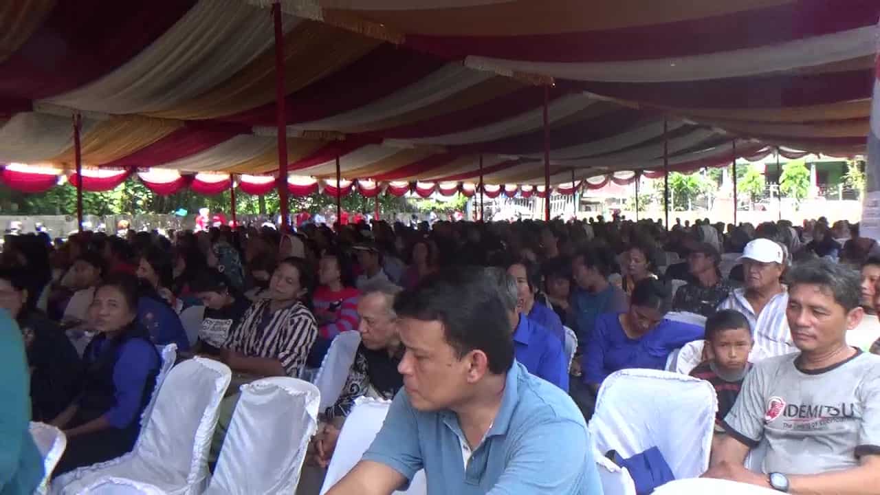 Antusiasme warga memadati Lapangan Jalan Bajak V, Medan Amplas, mengikuti kegiatan sosialisasi penanggulangan kemiskinan, Minggu (13/04/2025). (Foto: Arya/pelitaharian.id).