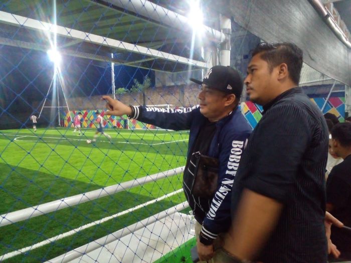 Ketua Tim Advokasi Hukum Pendukung Sejati (PASTI) Bobby Sumatera Utara, Dr. Muhammad Sa'i Rangkuti, SH., MH., saat berada di lokasi turnamen Turnamen FUN Mini Soccer Pasti Bobby Kota Medan di Lapangan Atlas Mini Soccer, Jalan STM Medan Johor, (pelitaharian.id/Foto: Arya).