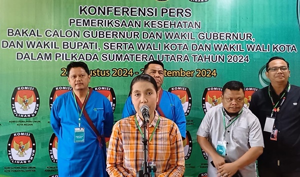 Ketua KPU Kota Medan, Mutia Atiqah menjelaskan Komisi Pemilihan Umum (KPU) Kota Medan melaksanakan tes kesehatan untuk tiga pasangan calon Wali Kota dan Wakil Wali Kota Medan di RSUP H. Adam Malik pada Jumat (30/8/2024) pagi. (pelitaharian.id/Istimewa)