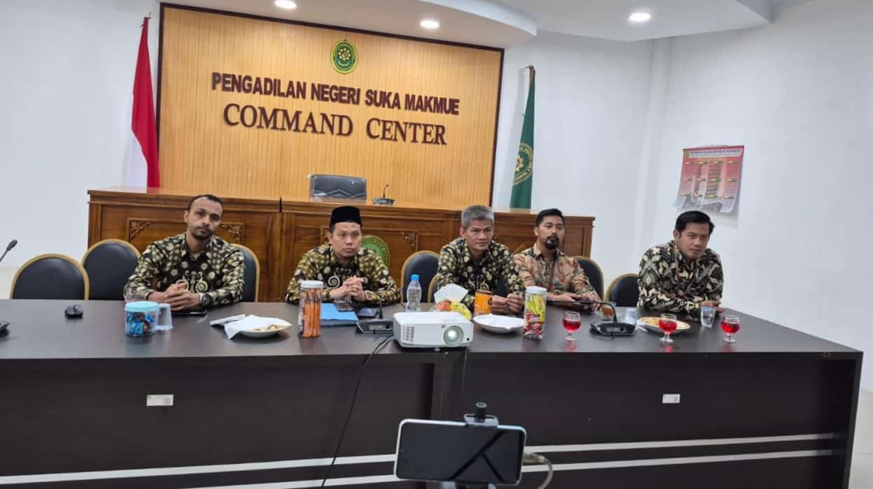 Suka Makmue, Ikatan Hakim Indonesia (IKAHI) Cabang Suka Makmue mengikuti perayaan puncak Hari Ulang Tahun (HUT) ke-72 IKAHI secara daring dengan penuh khidmat dan semangat kebersamaan, di Pengadilan Negeri Suka Makmue, Rabu (23/04/2025). Acara nasional ini dipusatkan di Balairung Mahkamah Agung Republik Indonesia dan dihadiri secara daring oleh Pimpinan Mahkamah Agung, para Hakim Agung, dan Pengurus Pusat IKAHI, sementara Pengurus Daerah (PD) dan Pengurus Cabang (PC), termasuk PC IKAHI Suka Makmue, mengikuti secara daring.